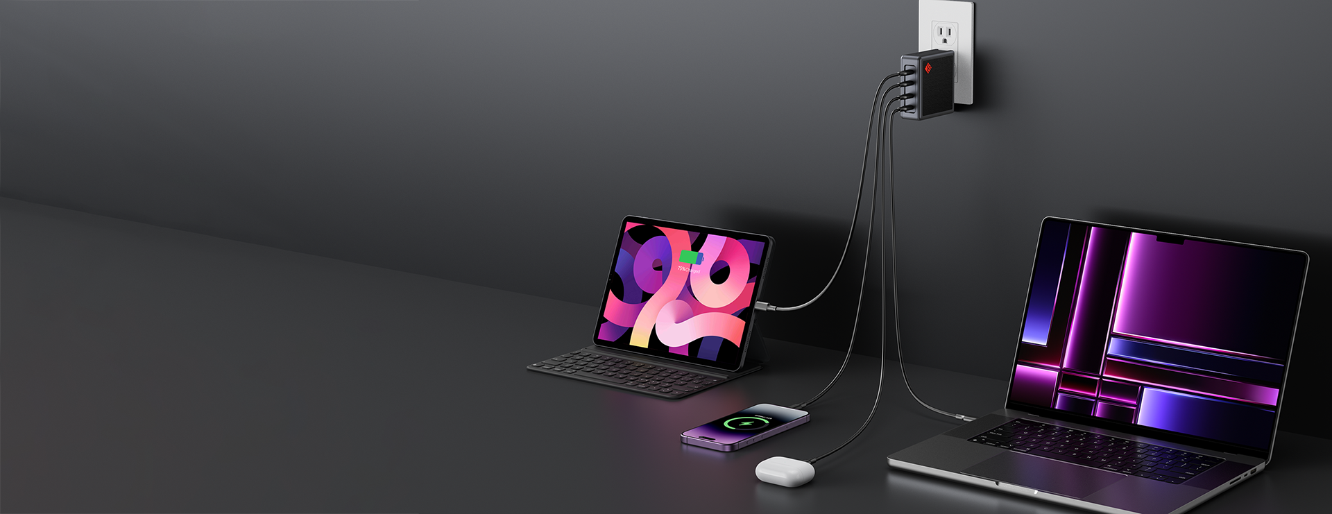 Viele moderne Geräte unterstützen Schnellladen, und das SlimQ 150W USB-C Ladegerät ist kompatibel mit PD3.1, PD3.0, QC 4+, Apple 20W und Samsung PPS (25W). Es kann das iPhone 12/13 Pro Max in weniger als 30 Minuten von 0 auf 50% laden. Das SlimQ F1504C lädt ein MacBook Pro 16" (96W) mit voller Geschwindigkeit.