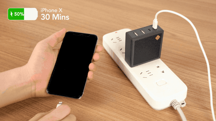 | Output | Type C1/C2/C3: Max 100W, PD3.0, PPS, 5V⎯3A/9V⎯3A/12V⎯3A/15V⎯3A/20V⎯3A/20V⎯5A/5V⎯4.5A/4.5V⎯5A USB A: Max 30W, 5V⎯4.5A/4.5V⎯5A/5V⎯3A/9V⎯3A/12V⎯2.5A |