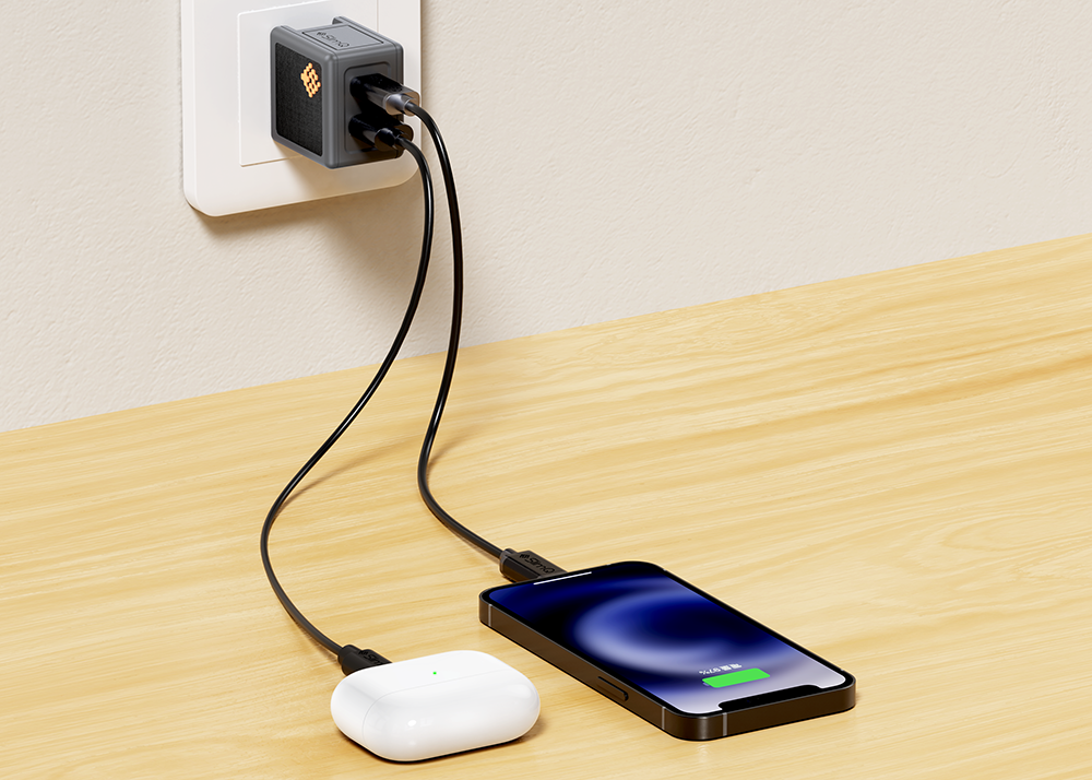 Laden Sie zwei Geräte gleichzeitig über den USB-C-Ausgang (max. 30W) und den USB-A-Ausgang (max. 18W), insgesamt 30W Ausgangsleistung.