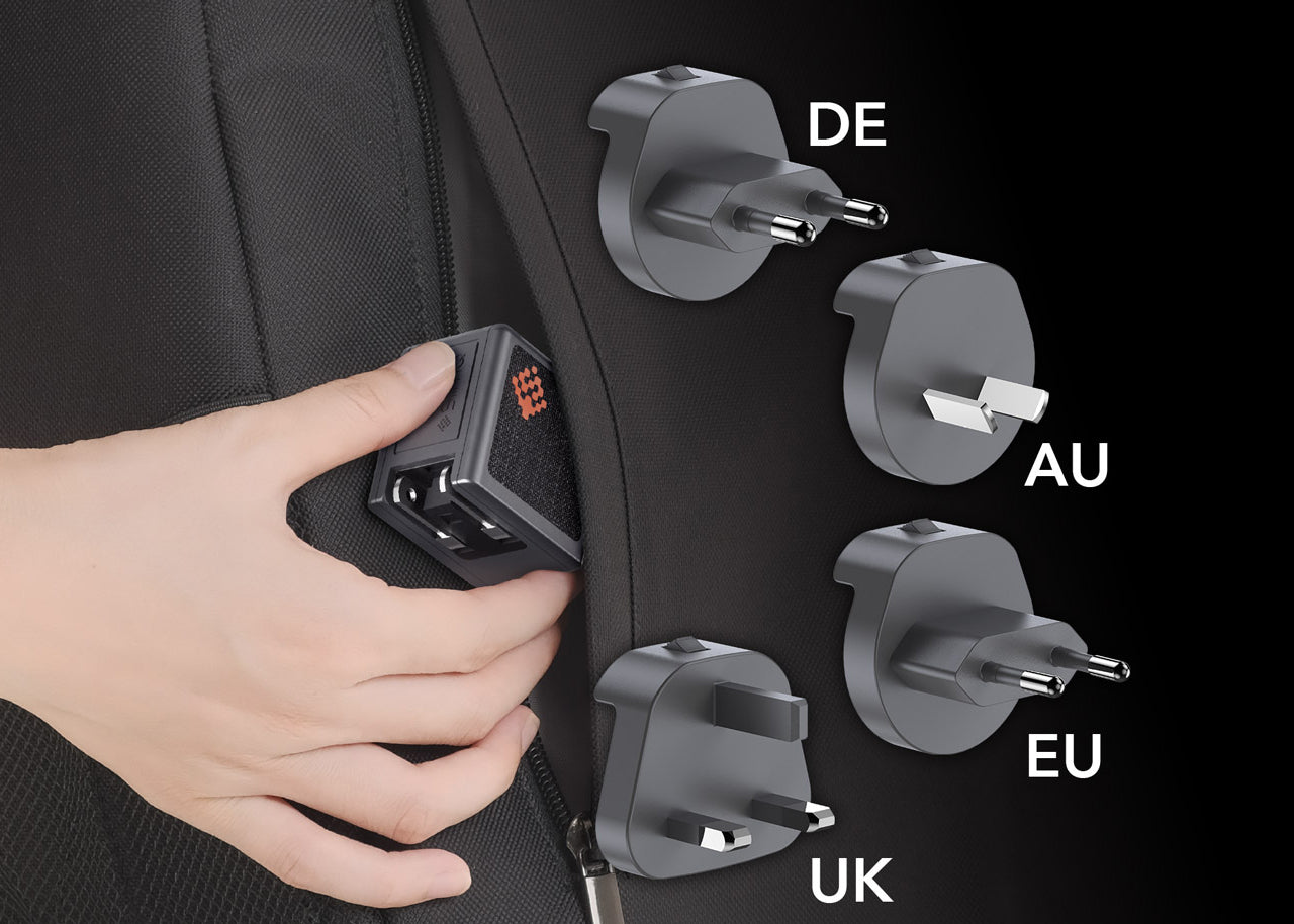 Nicht größer als ein Golfball – kompakt und tragbar, bietet genug Leistung bei minimaler Größe. Unglaublich kompakt, mit klappbarem Stecker für maximale Mobilität.