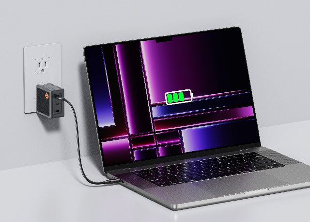 65W Power Delivery – lädt Ihr 15,4" MacBook Pro in nur 2 Stunden. Angetrieben von der neuesten GaN-Technologie wird das USB-C Ladegerät kleiner und maximiert die Ladeeffizienz bei weniger Wärmeentwicklung.